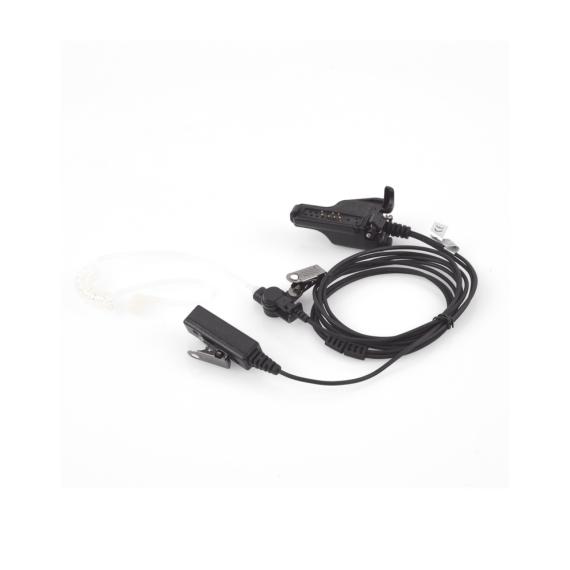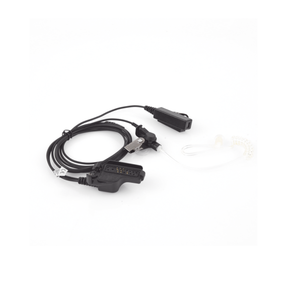 Kit de 2 hilos para vigilancia con audífono de tubo acústico y micrófono/PTT interconstruido.