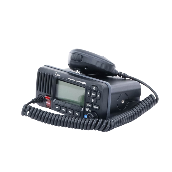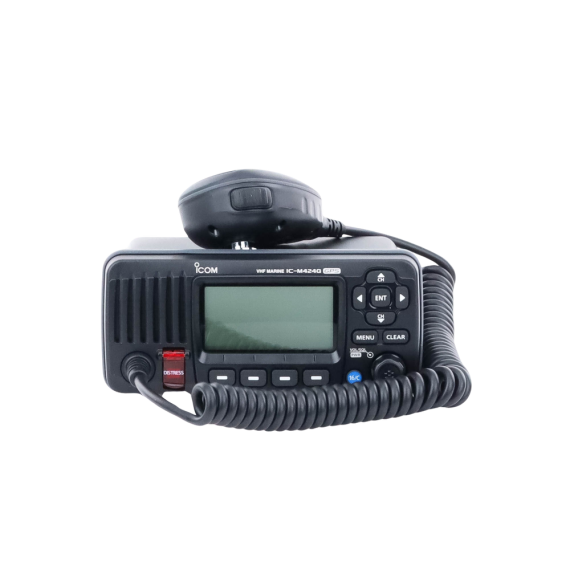 Radio Móvil Marino Icom IC-M424G, color negro, 25W, Tx:156.025-157.425MHz, Rx:156.050-163.275MHz, con GPS interconstruido, pantalla de matriz de puntos de fondo blanco, capacidad de llamada selectiva DSC. Incluye: micrófono, cable de alimentación, ICM424